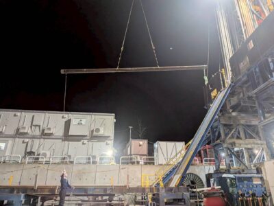 重量物を大型クレーンやベント(仮支柱)で支え、ミリ単位で位置決め。